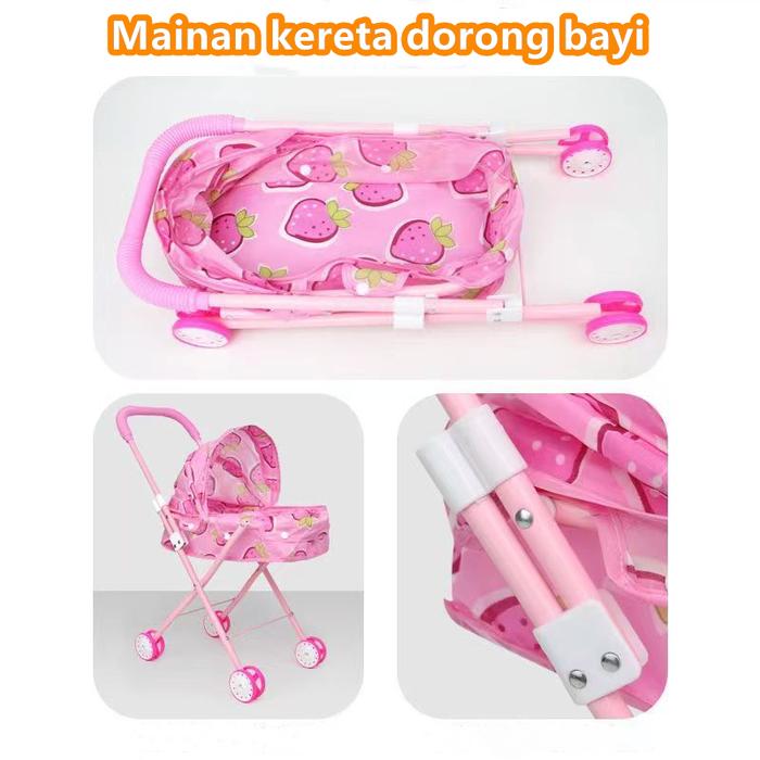Mainan Boneka Troli Anak Kereta Dorong Set Boneka Bayi Anak Perempuan - Orange