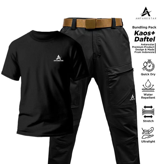 Paket Hemat Celana Gunung Quickdry Kaos Sport Pria Adventure Evo Antarestar - Hitam, Xxl