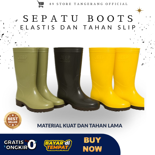 SEPATU BOOTS PRIA WANITA KARET JEEP HIJAU KUNING HITAM SEPATU PROYEK ANTI AIR BAHAN PVC BOOTS TERLARIS Gratis Ongkir