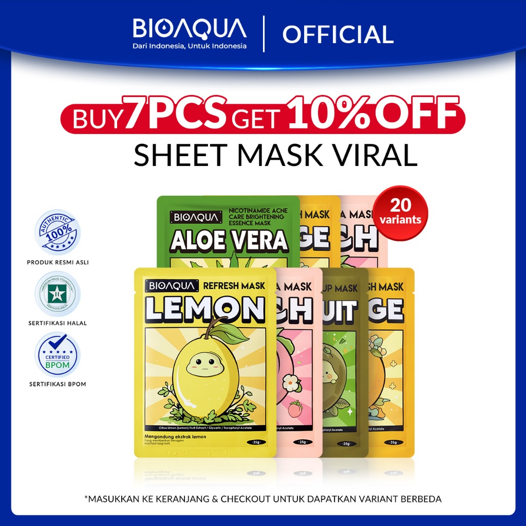 [Add to Cart for Mix Variants]-BIOAQUA Sheet Mask Hydrating Essence Face Mask Brightening Moisturizing Skin Care Anti aging Masker Wajah(25g/pcs) 12 pcs / 24 pcs