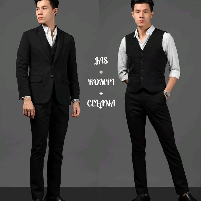 Dvandra.Id Setelan Jas Hitam Pria Original Premium Jas Rompi Celana Jas Blazer Formal Slim Fit - Set Jas 3In1 Fullblack