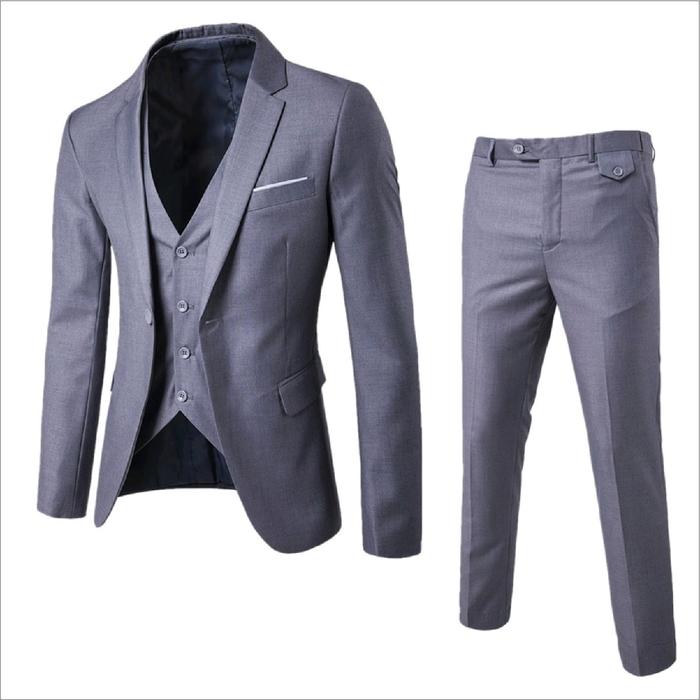 Setelan Jas 3In1 Pria Dewasa Slimfit Lengan Panjang Blazer Formal Wisuda Semi Kantor Casual - Hitam, S