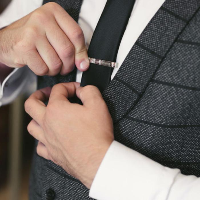 Malcolm Fashion Metal Tie Clip - Wedding Clamp Necktie Penjepit Dasi Pengait - Black Slvr Strp