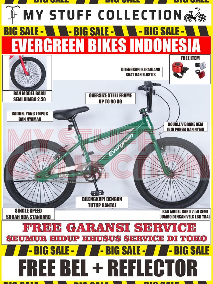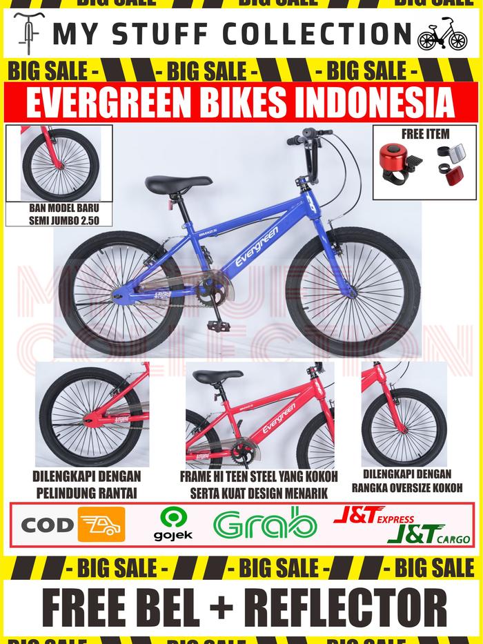 Sepeda Bmx Ukuran 20 Inch Merek Evergreen Bike Cocok Untuk Usia 8 Tahun Hingga Dewasa - 20 Inch Warna Merah Ban 2.50 Se