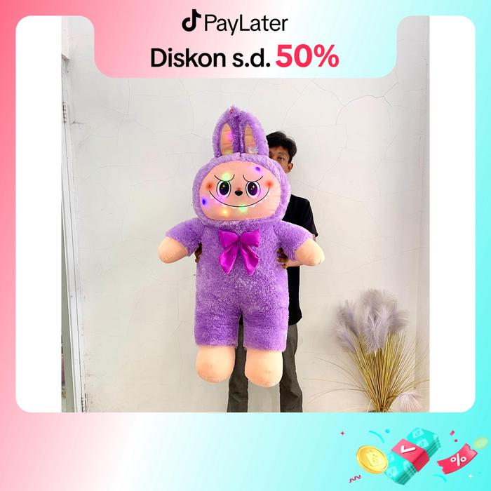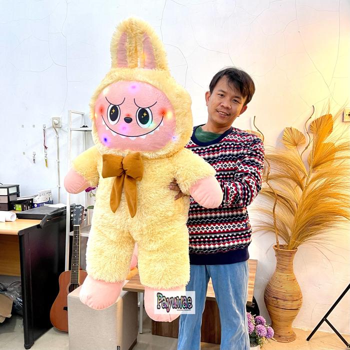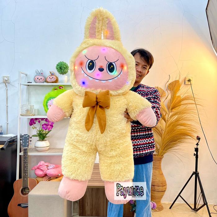 Boneka Labubu Jumbo Led Tinggi 110Cm Ukuran Besar The Monster Exciting Macaron Asli Pakai Lampu Mainan Dolls - Krem Led