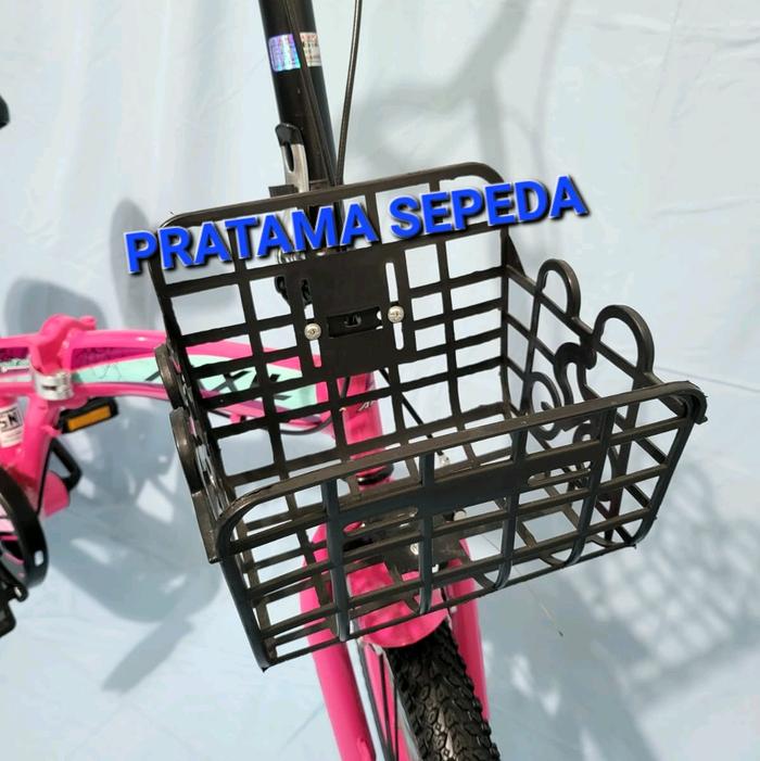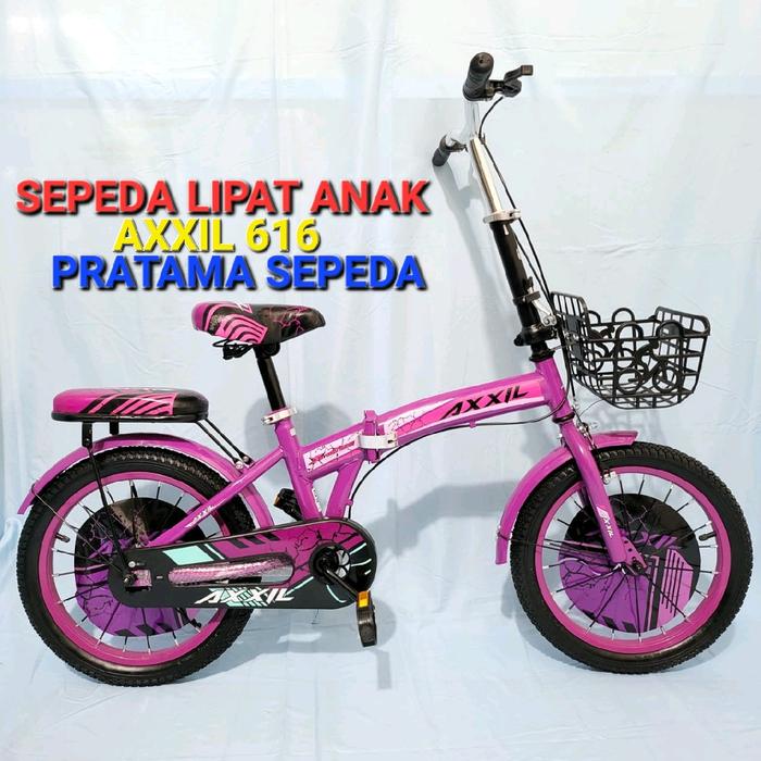 Sepeda Lipat Axxil 18 Inch Dengan Keranjang - Pink, Full Rakit - Instant Only