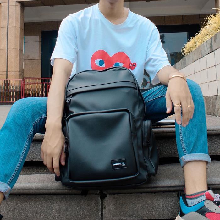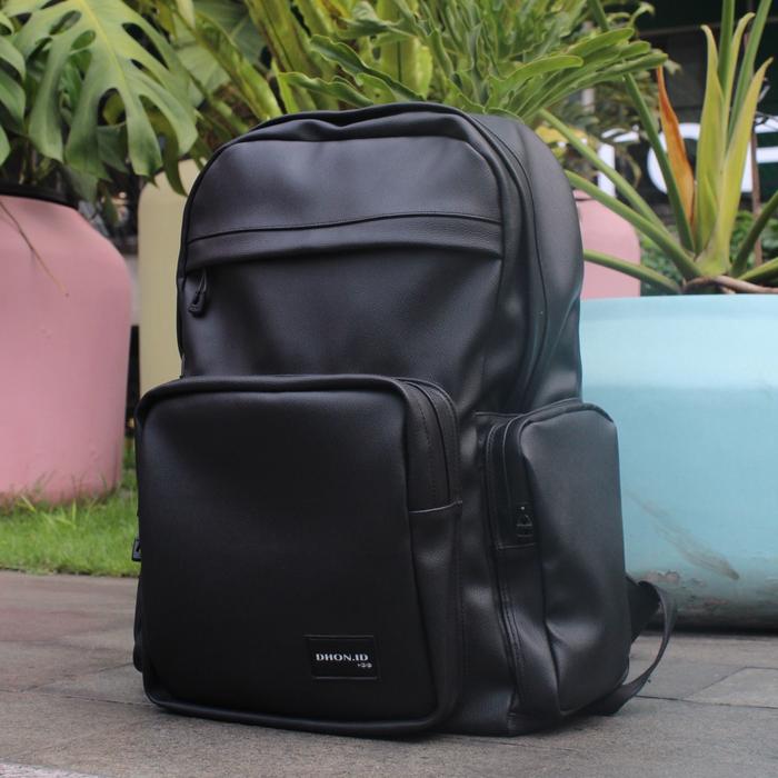 Dhon Id Tas Ransel Pria Waterproof Backpack Hitam Best Seller Kulit Pu Sekolah Travel - Hitam
