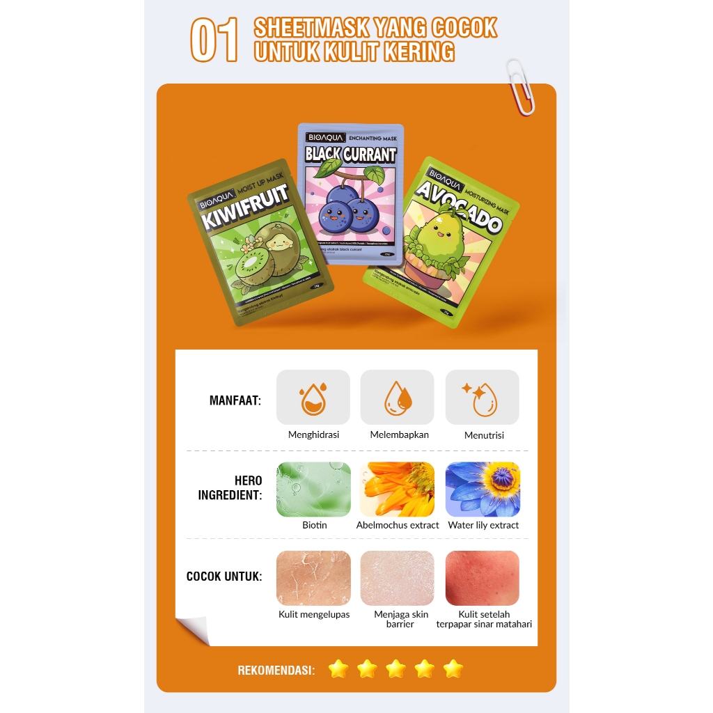 [BUY 7PCS GET 10 PERSEN OFF]-BIOAQUA Natural Skin Care Mask Masker Sheet / Mask Sheet / Masker Wajah Memutihkan Anti-Acne Hyaluronic Acid Hydrating Essence Face Mask