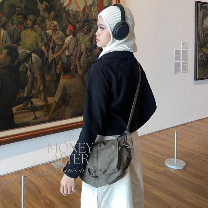 Megan Y2K Bag By Money Alter / Tas Selempang Bahan Kanvas / Military Bag - Cream