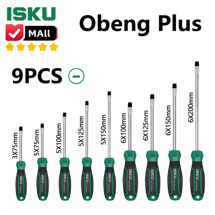 Isku Obeng Set 9 Pcs 75-200Mm Minus Screwdriver Set Tip Magnetik