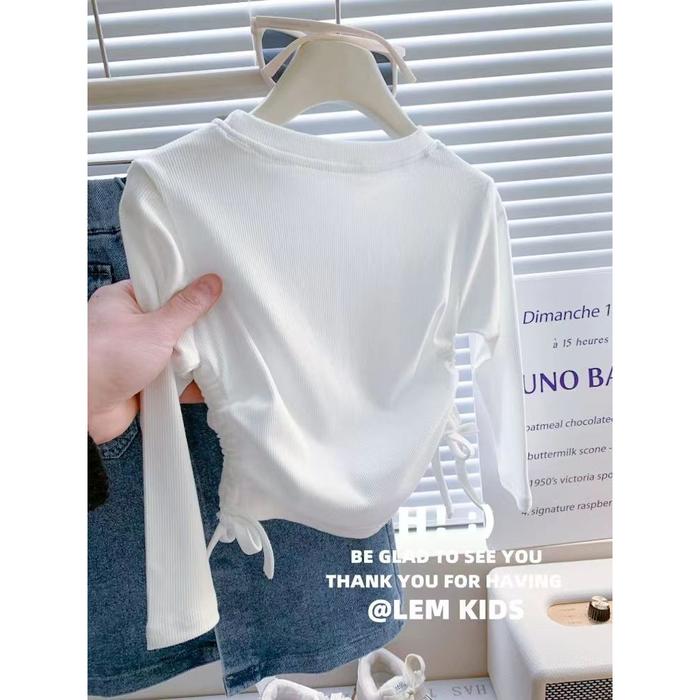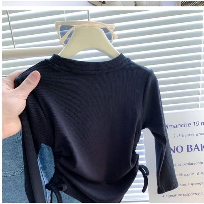 Serut My Body Kaos Anak Anak Perempuan Kaos Polos Baju Anak Lengan Panjang 1-9 Tahun Kids Fashion - Black, 90(2-3 Tahun