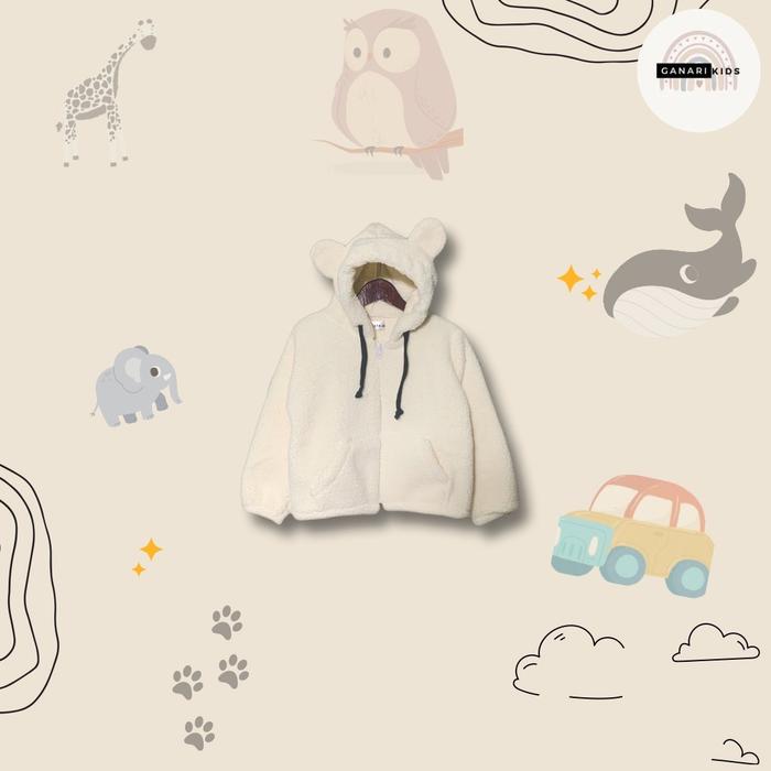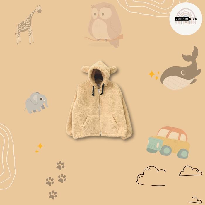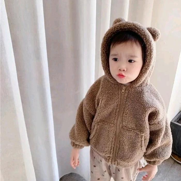 Sweater Hoodie Sherpa Anak Unisex Kids Zipper 2-9 Tahun Bear Cewe Fashion - Hitam, M 2-3 Tahun