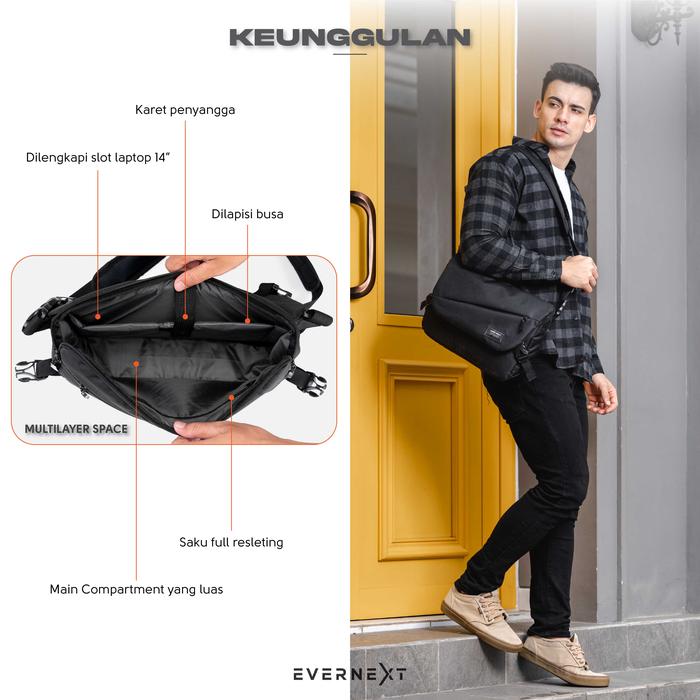 Evernext - Messenger Bag Pria Tas Selempang Pria Tas Selempang Laptop Terbaru - Black