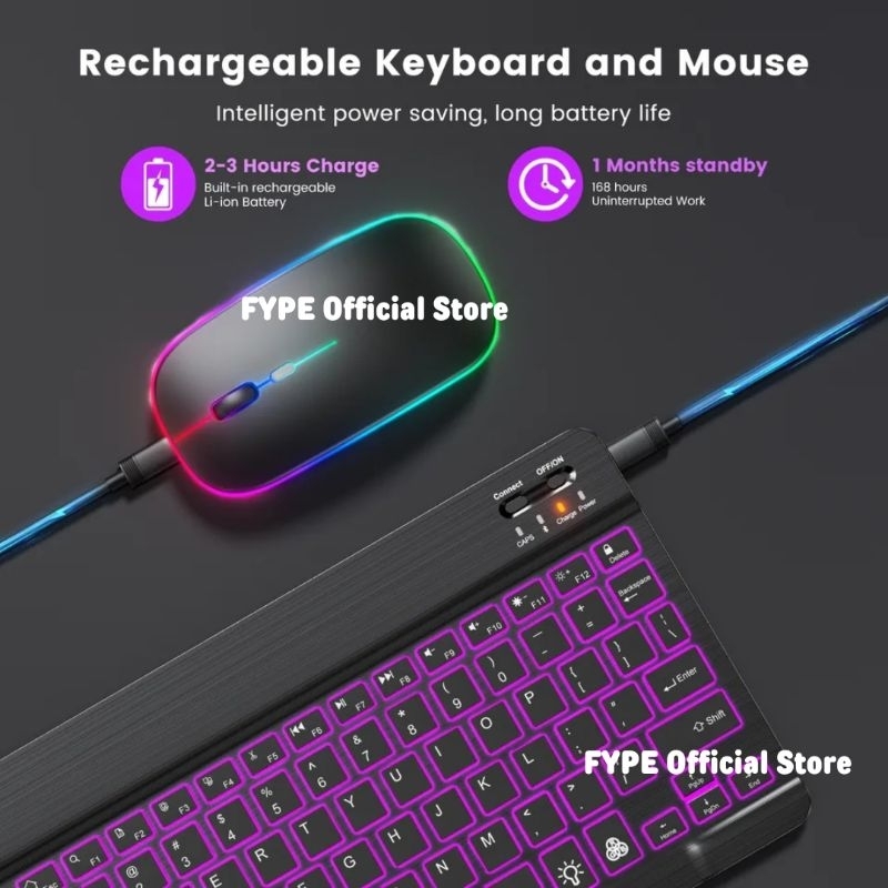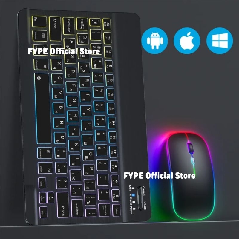 Keyboard Bluetooth Wireless Mouse LED Backlight Backlit For Tablet PC Pad Laptop Android iPhone