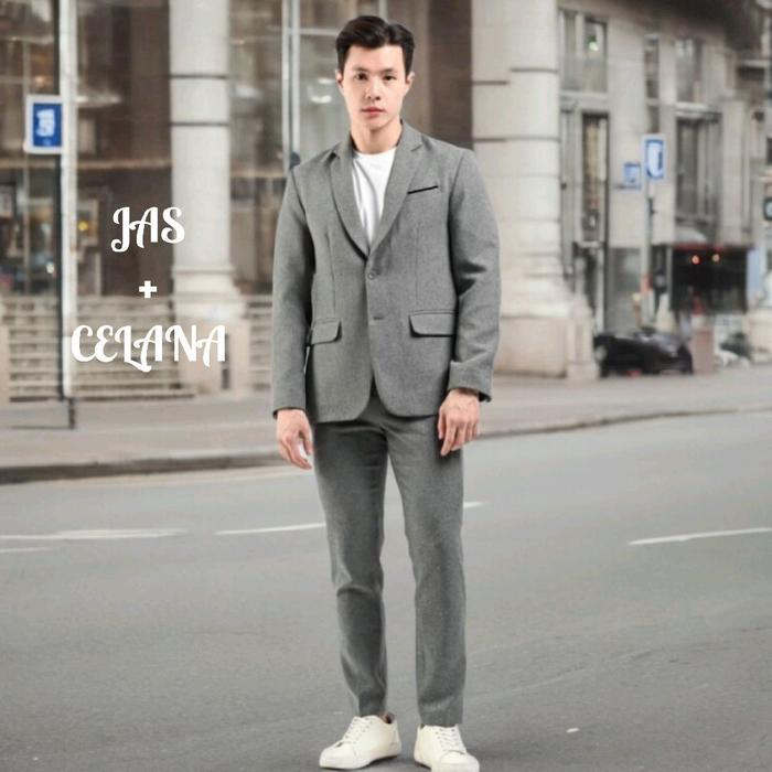 Dvandra.Id Setelan Jas Formal Pria Slimfit Hitam Set Jas Blazer Kantor, Wisuda, Pengantin - Set Jas 2In1 Fullblack, M