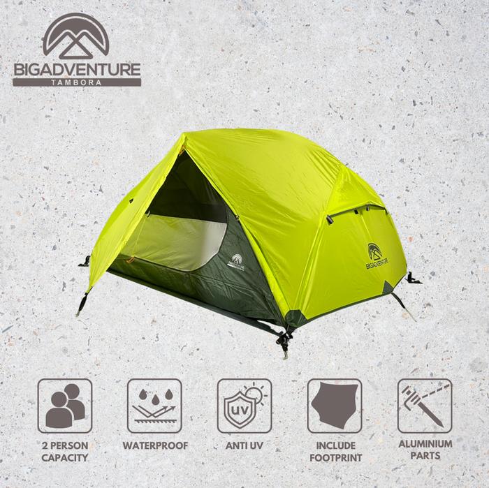 Bigadventure Tambora Series - Tenda 2 Orang Untuk Camping Outdoor 210T Ripstop Polyester Pu 3000Mm Upf 50+ Dan Peg Alumi