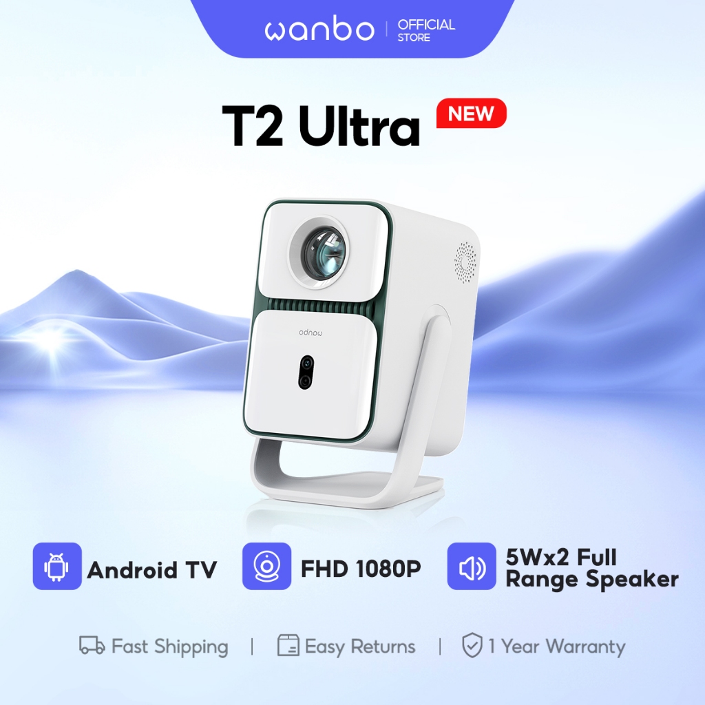 Wanbo T2 Ultra New Proyektor Android TV 5W*2 Speakers Auto-focus 1080P 500ANSI Lumens 120° Rotating Projection Android 1