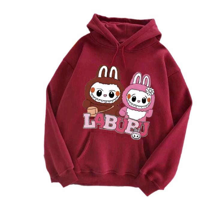 Sweater Hoodie Anak Perempuan Labubu Twin Cute Usia 3 5 6 7 8 9 10 11 12 13 15 Tahun - Pink, 3-4 Tahun