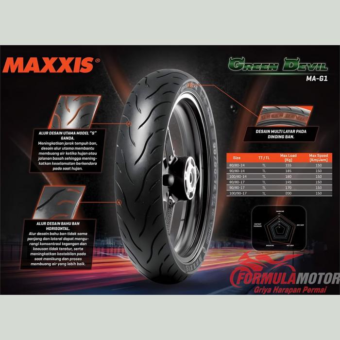 Maxxis Green Devil Ma-G1 Ring 17 Tubeless All Size (Profil Donat Medium Soft Compound) Ban Motor Bebek/Sport Tubles (Uku