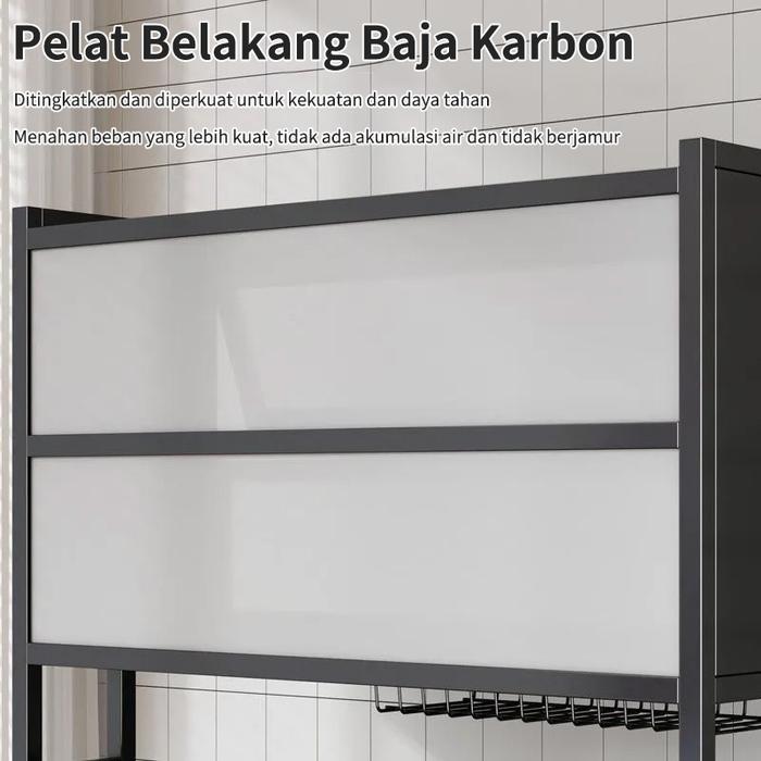 Ws Furniture Rak Piring Wastafel 2 Susun Dengan Kabinet & Aksesoris 4 Kait 65Cm-105Cm Baja Tahan Karat Multifungsi Dapur