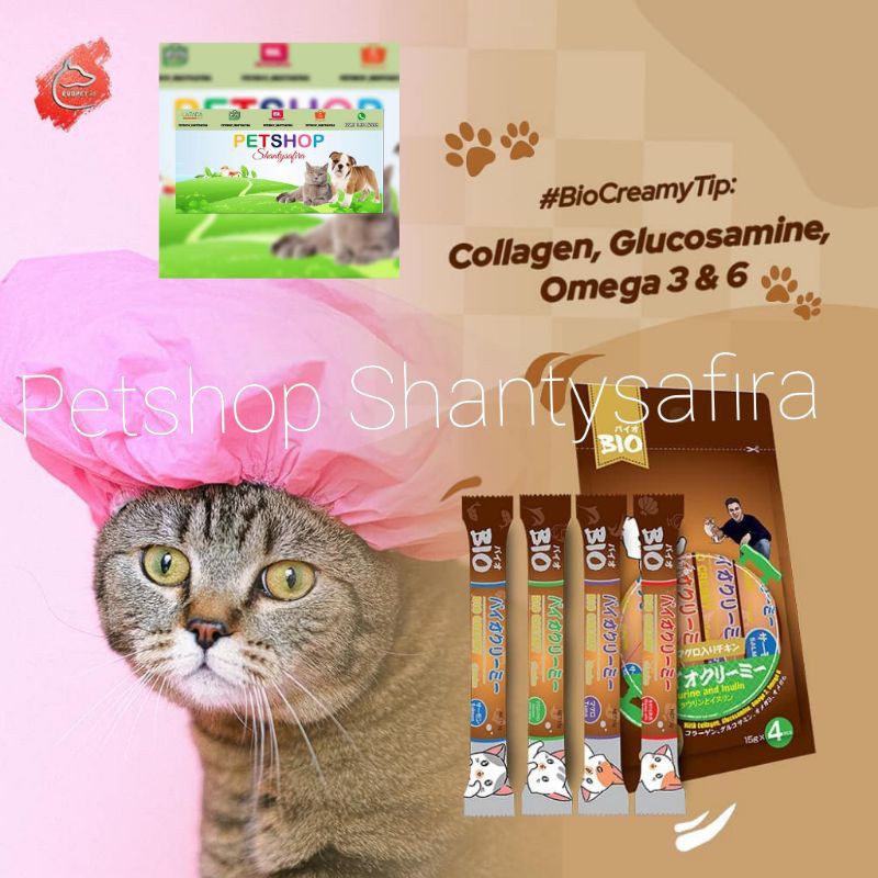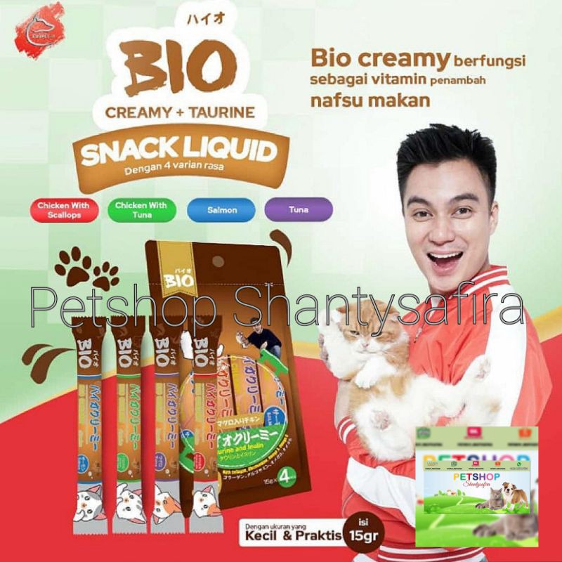 Snack Bio Creamy + Taurine Inulin Snack Kucing 15Gr x 4 Pcs Setara MEO Creamy