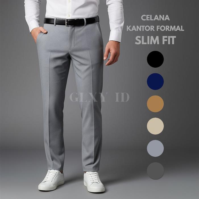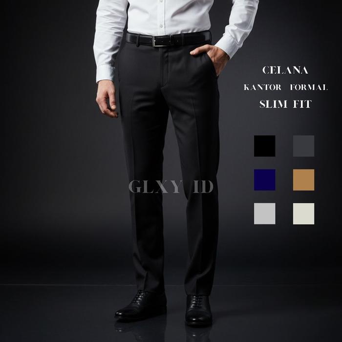 Celana Kantor Pria Slim Fit Bahan Semi Wool Premium Nyaman Adem Dipakai Sehari-Hari - Hitam, 27