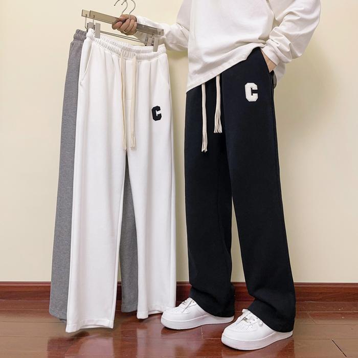 Celana Panjang Unisex Celana Baggy Cowok Gombrong Berkaki Lebar Keren Ringan Bernapas Pants K670 - Black, M