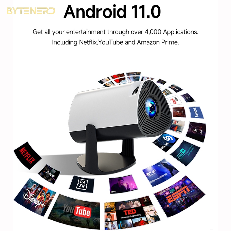 ByteNerd CY300MAX Proyektor Android 11.0 Bluetooth Projector 2.4+5G Wifi 6 Portabel Mini Proyektor Support 4K Home Theat
