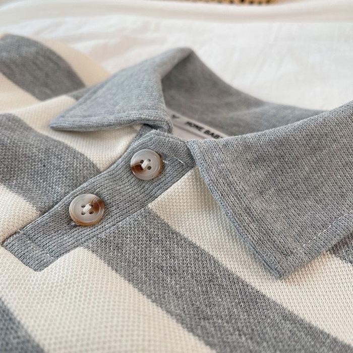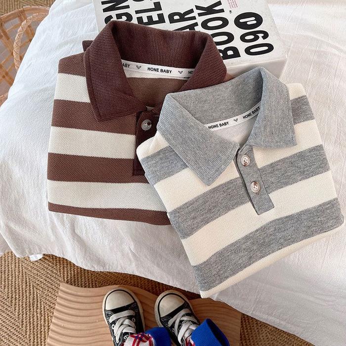 Brownieground Baju Fashion Sweater Anak Laki Laki Usia 6 Bulan - 5 Tahun Keren Motif Garis Abu Dan Coklat Import Premium