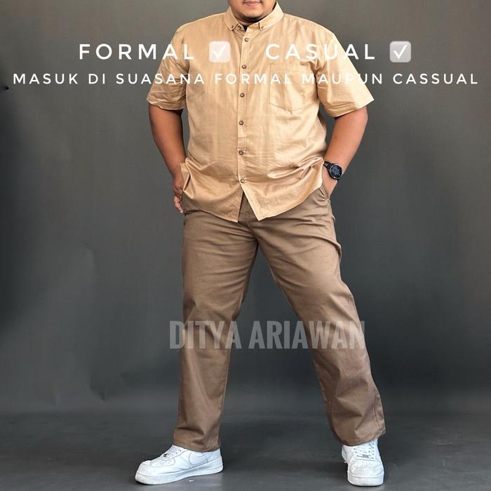 Celana Panjang Chinos Jumbo Strech Melar Cotton Carbon Nyaman Pria Army Casual Tebal - Black, 40