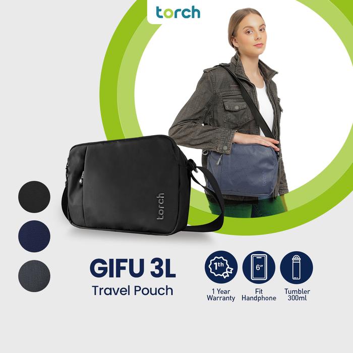 Torch Tas Selempang Bahu Pria Wanita - Sling Bag Travel Pouch Gifu 3L - Hitam Polos