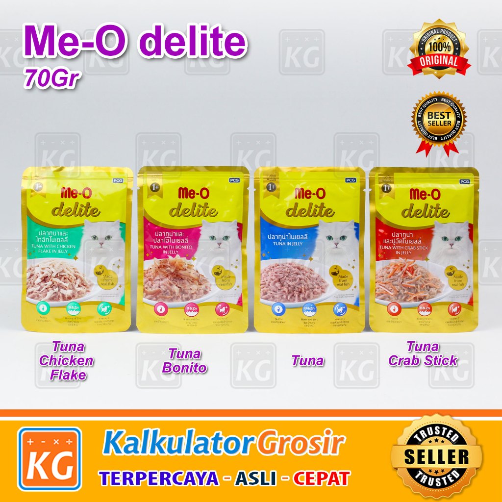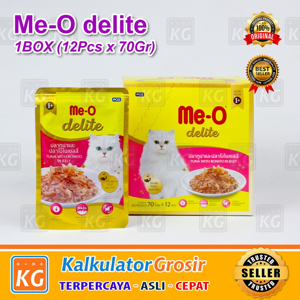 Meo Delite Pouch 1Box 12pcs x 70g 1Dus Pouch Makanan Kucing Basah Pakan Wet Food Adult Me-O Dewasa 1tahun Sachet