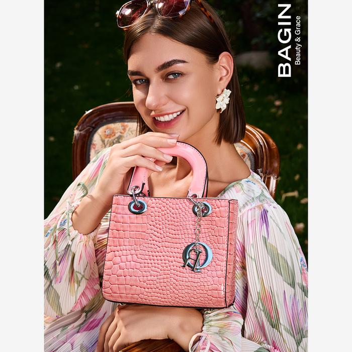 【Bagin】Fayana Bag - Luxury Tas Selempang Shoulder Bag Wanita Motif Croco Kulit Pu Leather [Gy-290] - Pink