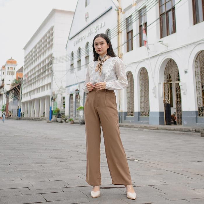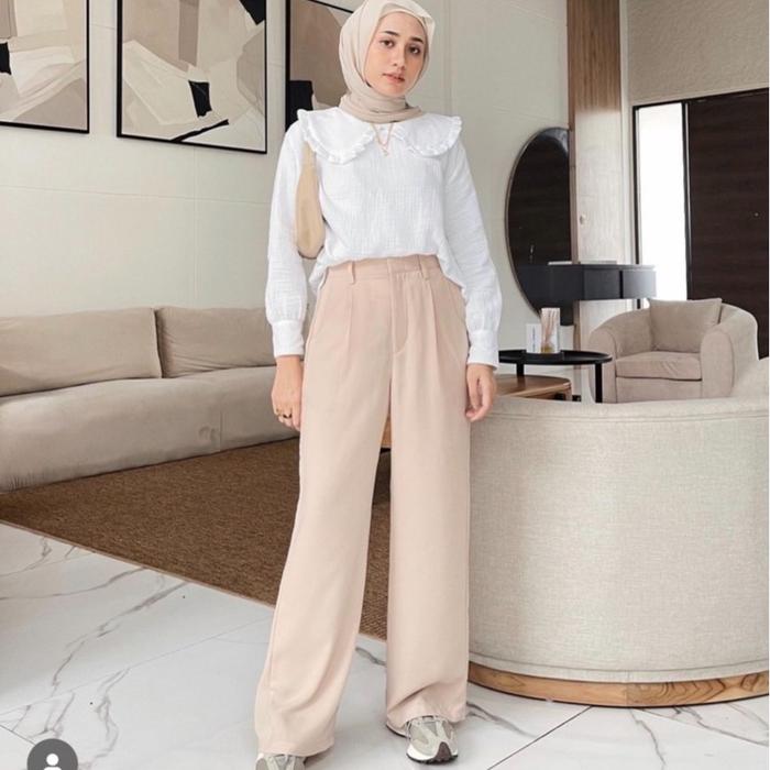Yora Loose Pants By Wear Label - Celana Kulot Panjang Formal Kantor Basic Wanita - Broken White, M