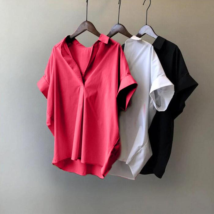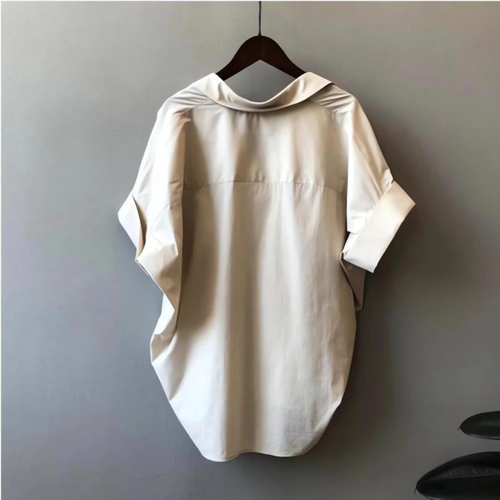 Baju Atasan Wanita - Cocoa Top - Kemeja Santai Katun Twill - Kemeja Shirt Casual Korean Style V-Neck Polos Kerah Nyaman