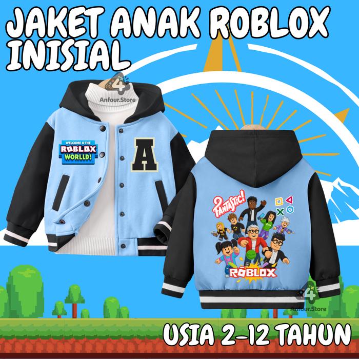 Jaket Anak Roblox Costum Inisial Nama Populer Laki-Laki/Perempuan Usia 2-12 Atahun - Varsity Biru, M 2-3 Tahun