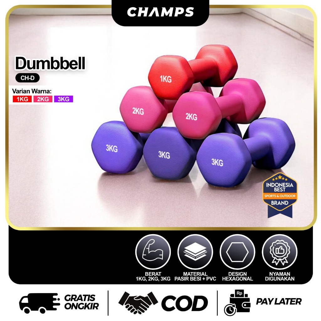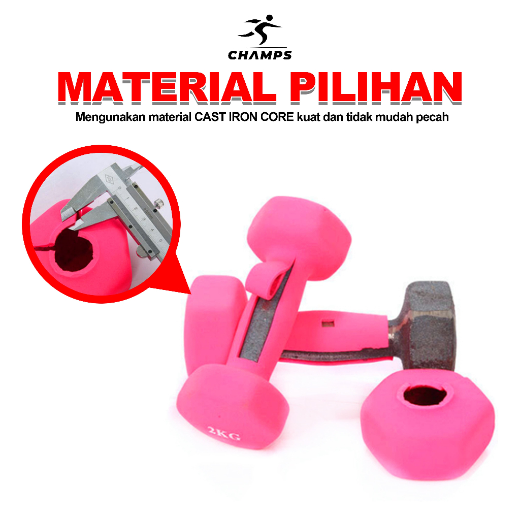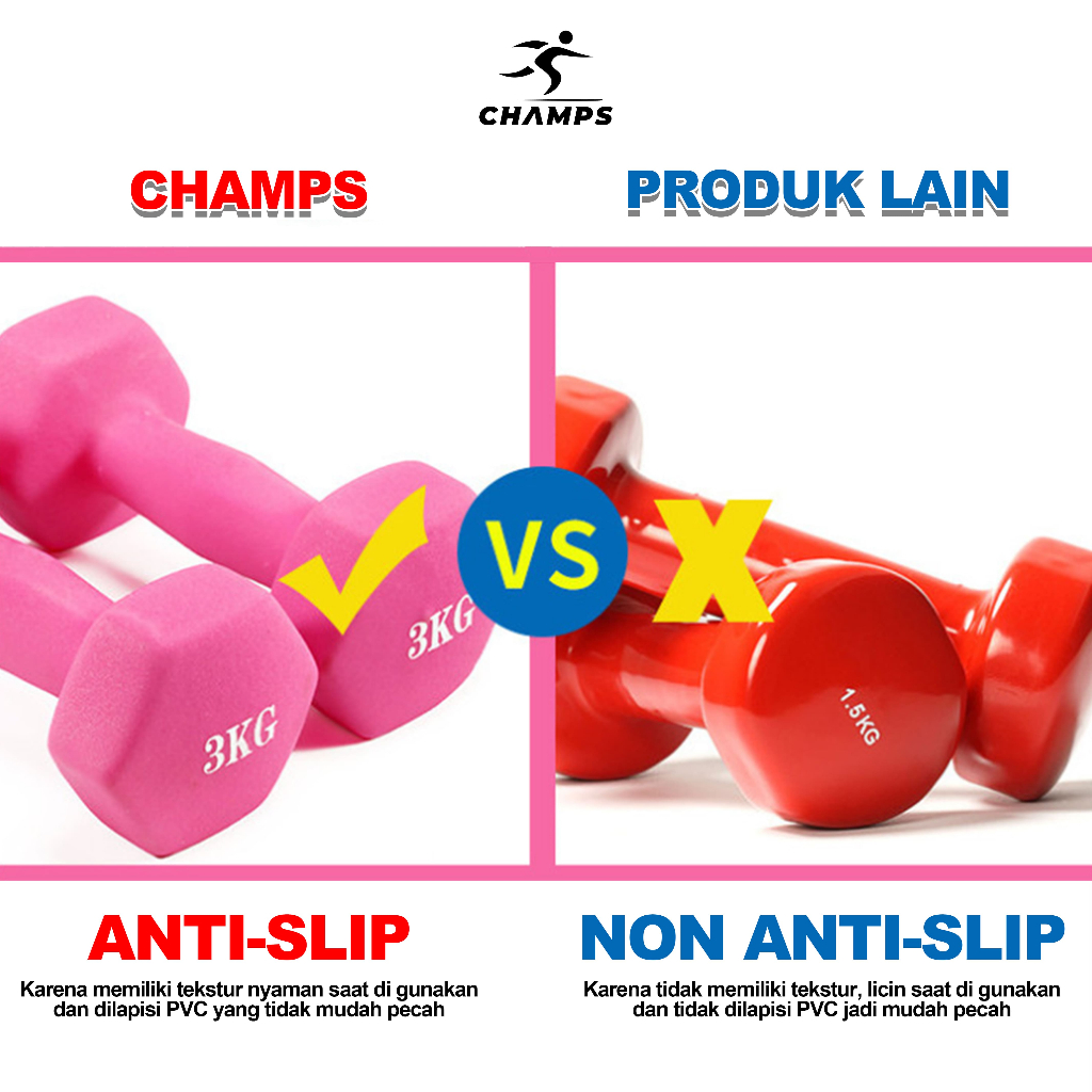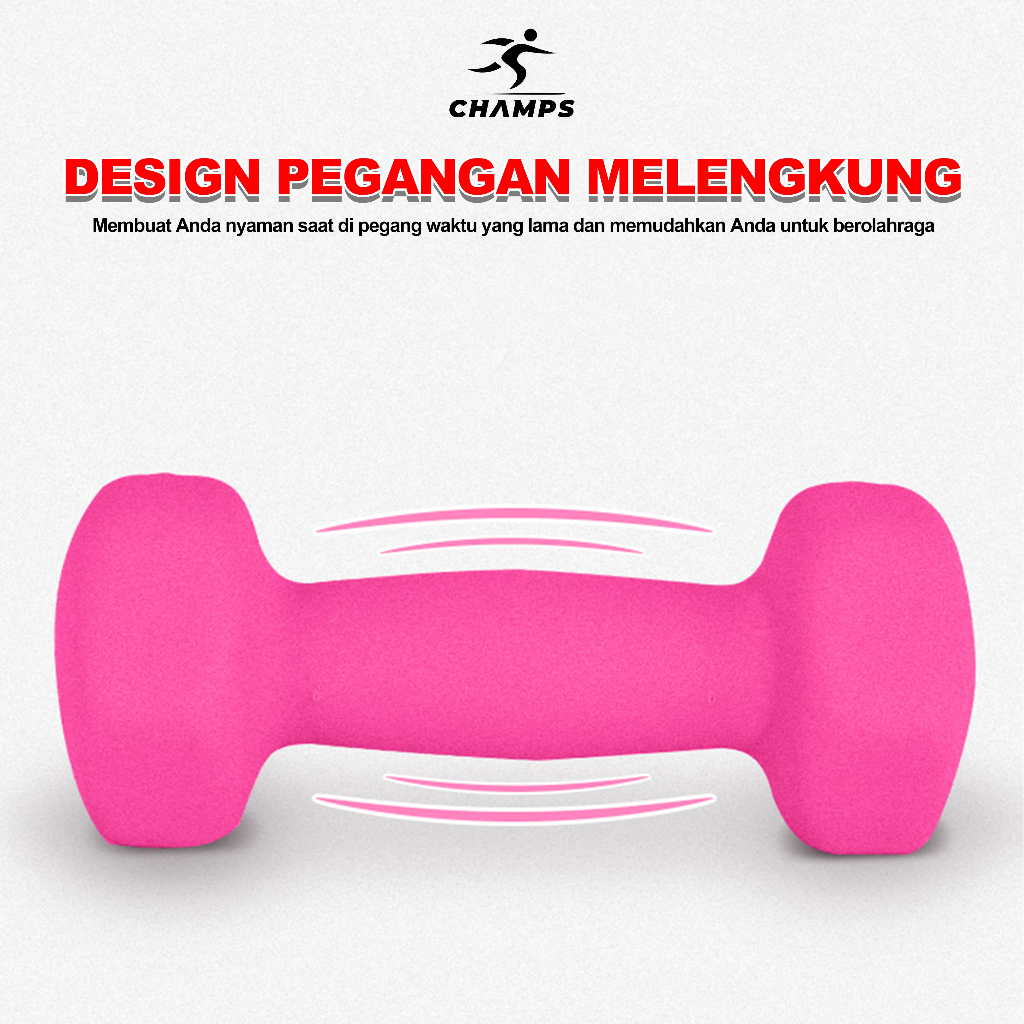 CHAMPS Dumbbell Neoprene PVC 1-3KG – Barbel Fitness Anti Slip, Alat Gym Rumah Murah Pemula