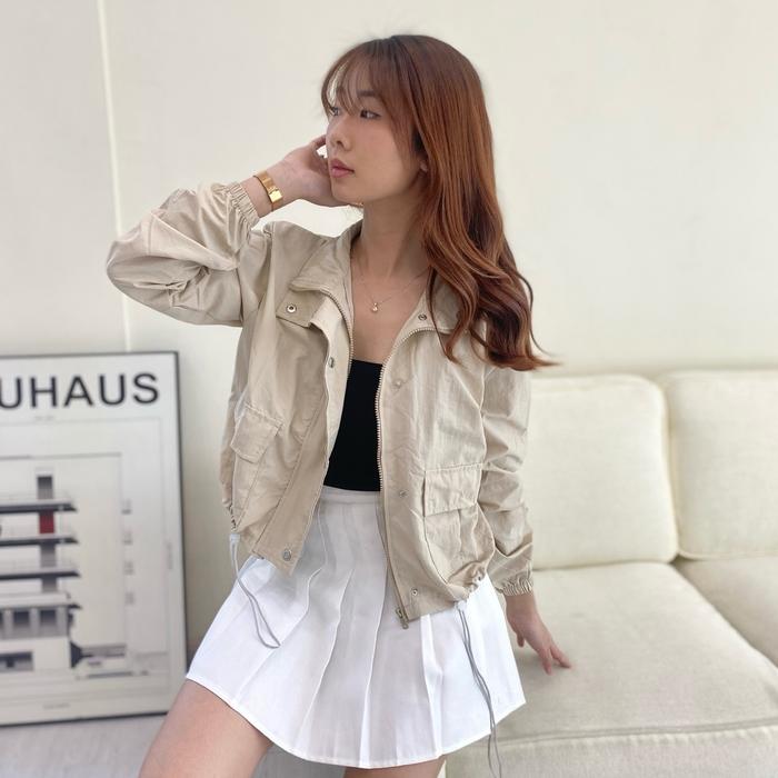 Ave 012 - Mithel Outer Jacket Parachute | Atasan Crop Jaket Parasut Lengan Panjang Wanita Casual - Denim, Size L (Ld 106
