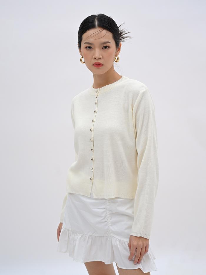 Nigoo Olive Cardigan Basic Knitwear Wanita - Broken White