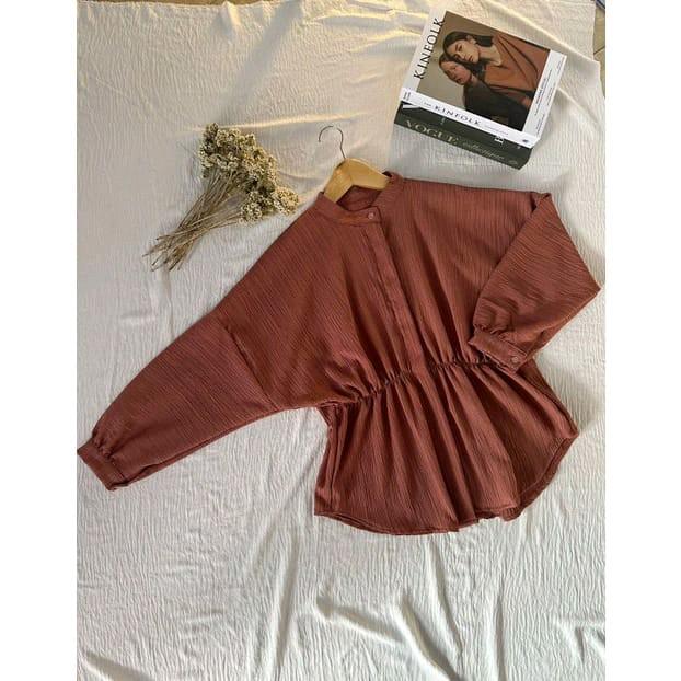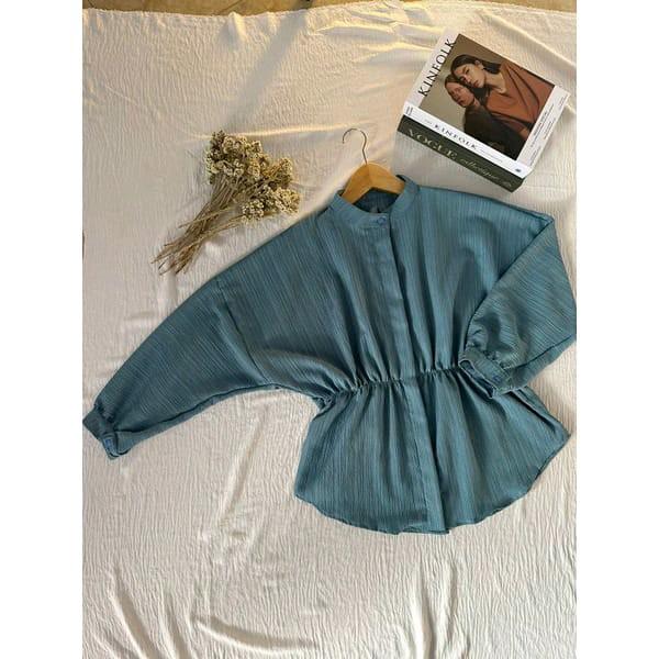 Kemeja Wanita Kerut Depan Korean Style Atasan - Srut Itam, 0Ne Size