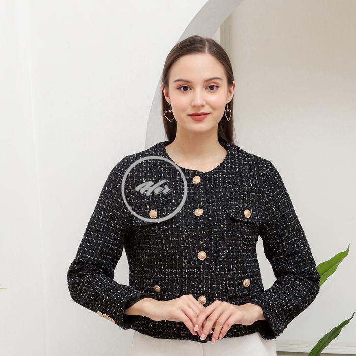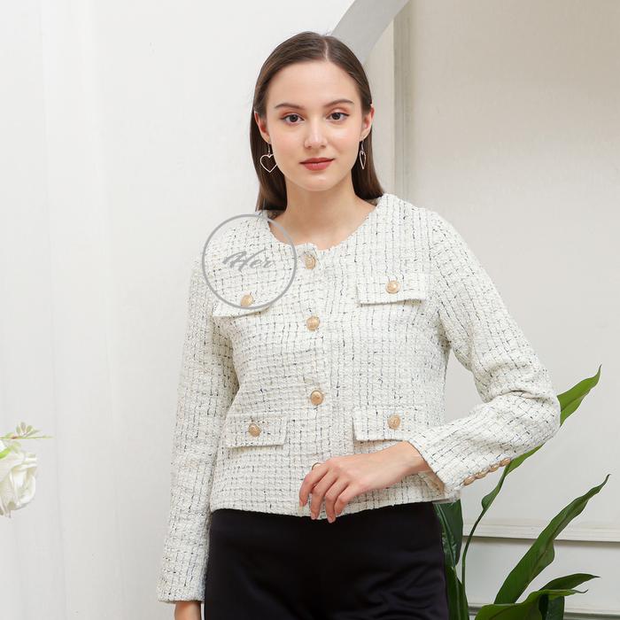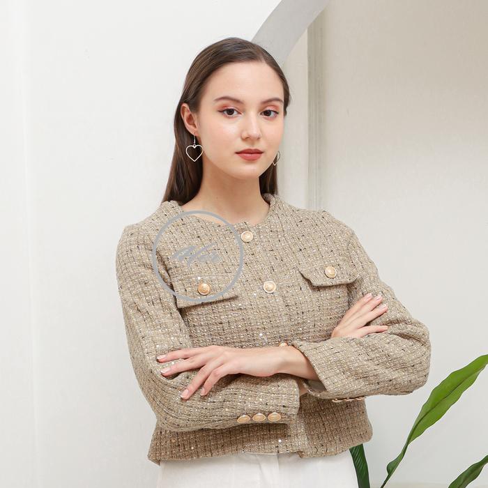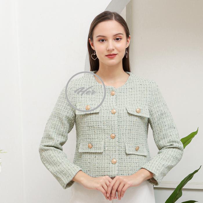 Her_Trends Lz02 Blazer Top Tweed Atasan Wanita Premium Baju Outer Panjang Casual - Green-L