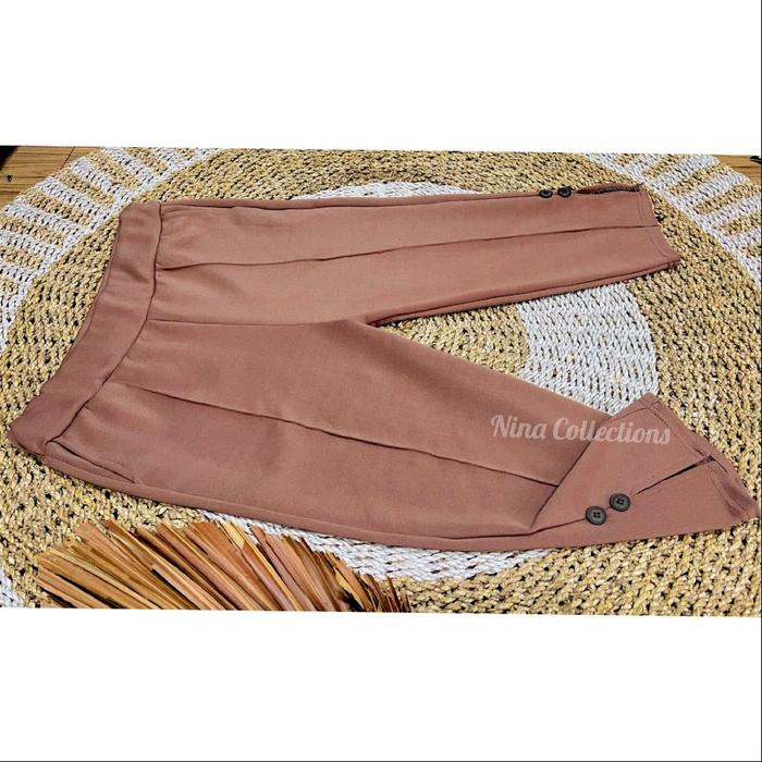Celana 3/4 Kancing Scuba Halus Lembut Panjang Sebawah Lutut - 3/4 Latte Kancing Scuba, Standart (Bb 35-63Kg)