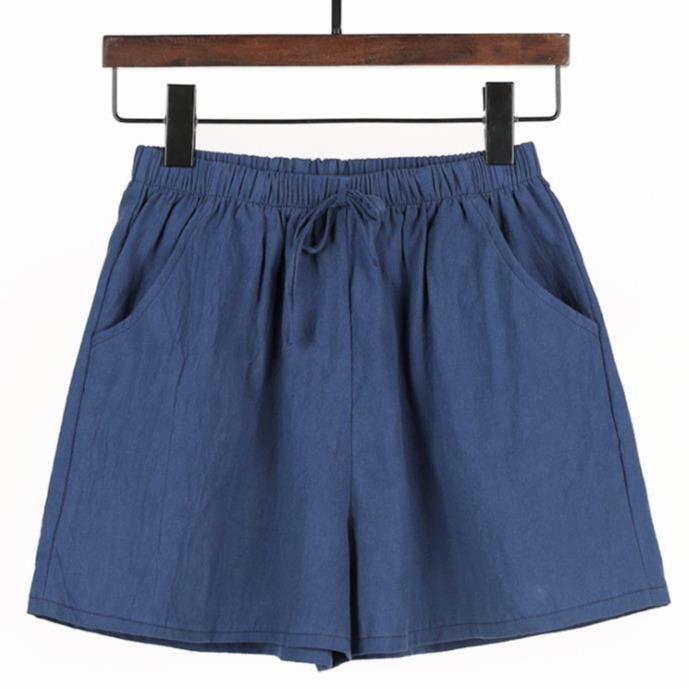 Celana Pendek Santai Wanita Linen Short Pants Hot Pants Polos Karet - Krem, S