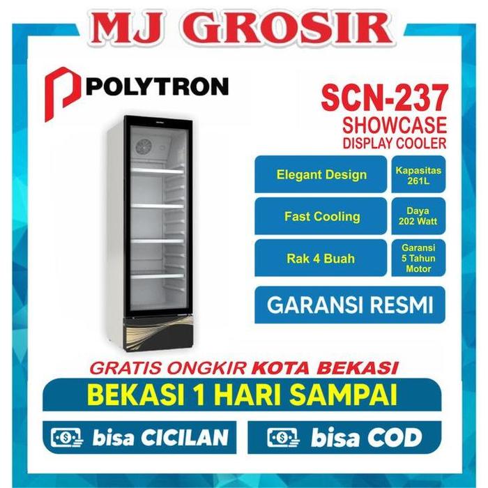 [Star]SHOWCASE POLYTRON SCN 237 L 4 RAK DISPLAY COOLER KULKAS LOW WATT - dus bawaan, RAK BAWAAN - packing kayu, +1 RAK T