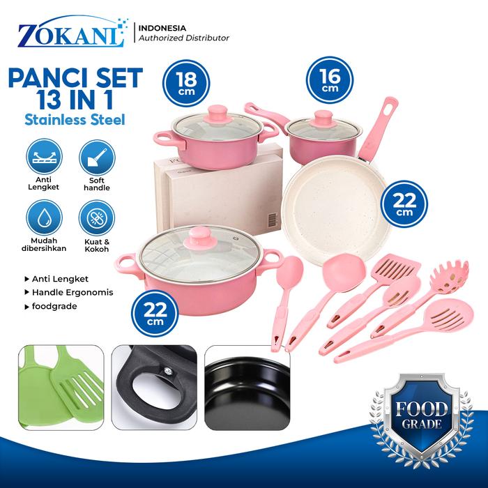 [Star]ZOKANI [paylater] 13IN1 Panci Set 4 Pcs dengan 3pcs tutup kaca Free Spatula Plastik 6 Pcs Cookware Panci Set Wajan