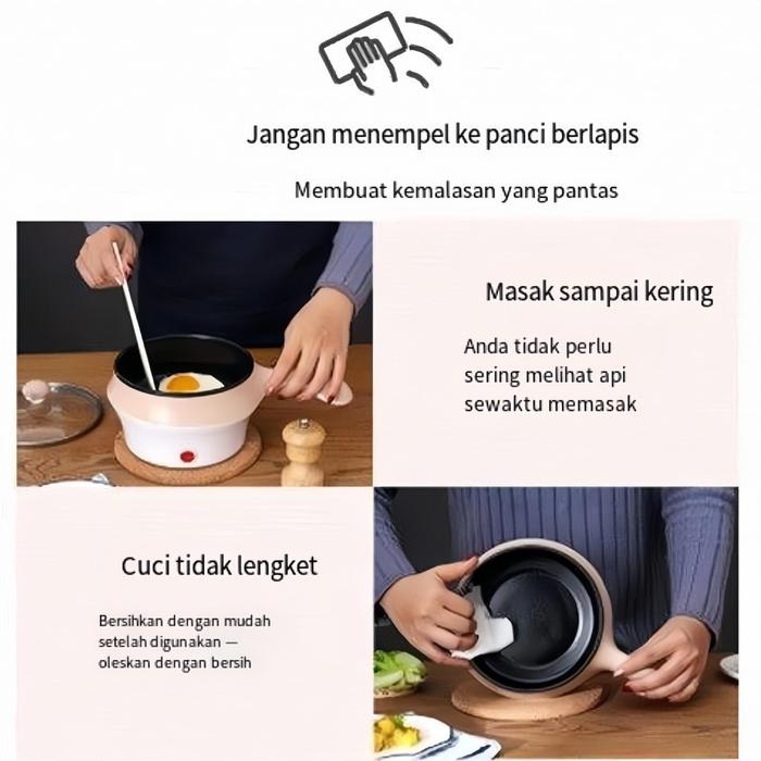 [Star]【AQUA】Kompor Listrik Multifungsi Asrama Kompor Listrik Mini Pelapis Anti Lengket Kapasitas 1,2 Liter panci listrik