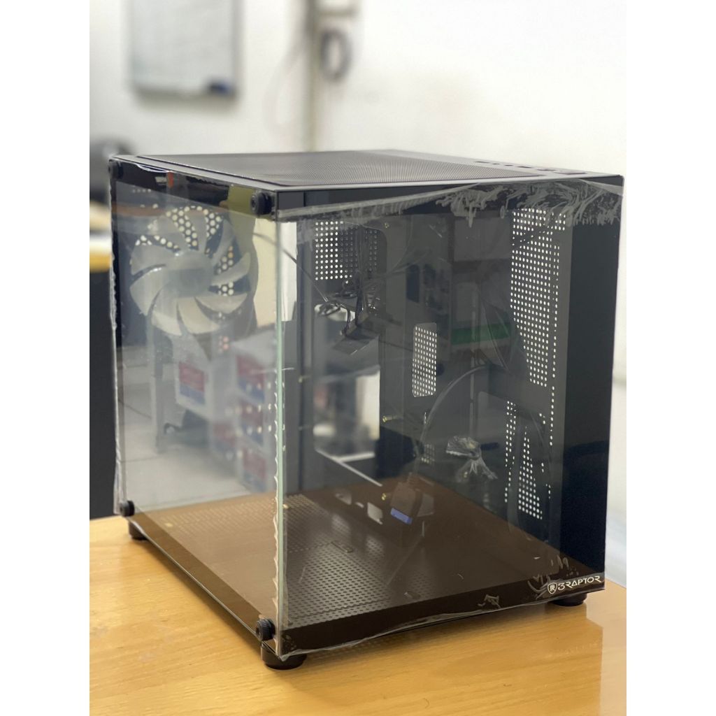 CASING RAPTOR AQUA CLEAR INCLUDE 3 FAN RGB M-ATX - HITAM