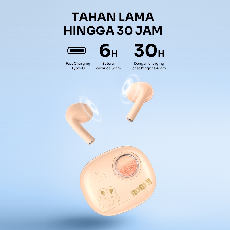 ROBOT TWS Flybuds T10S Semi In Ear Wireless Earbuds Bluetooth 5.3 IPX4 Waterproof Original - Garansi 1 Tahun