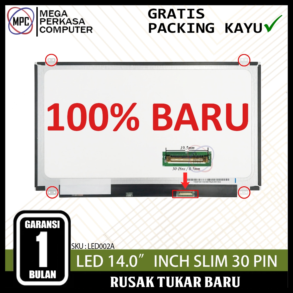 LED LCD Laptop 14 Inch SLIM 30 pin kuping atas bawah