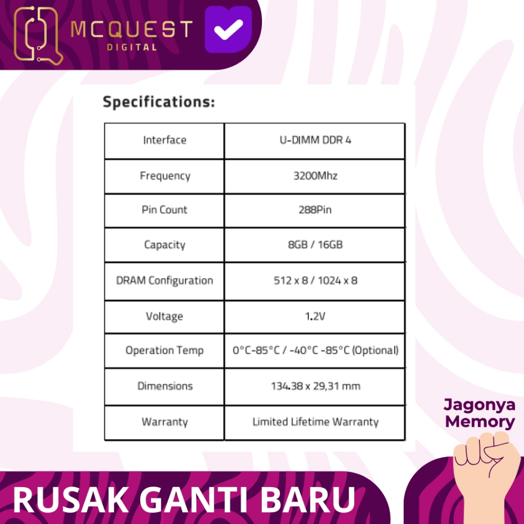 McQuest Merlin DDR4 PC25600 3200Mhz 16GB - Memory Ram PC